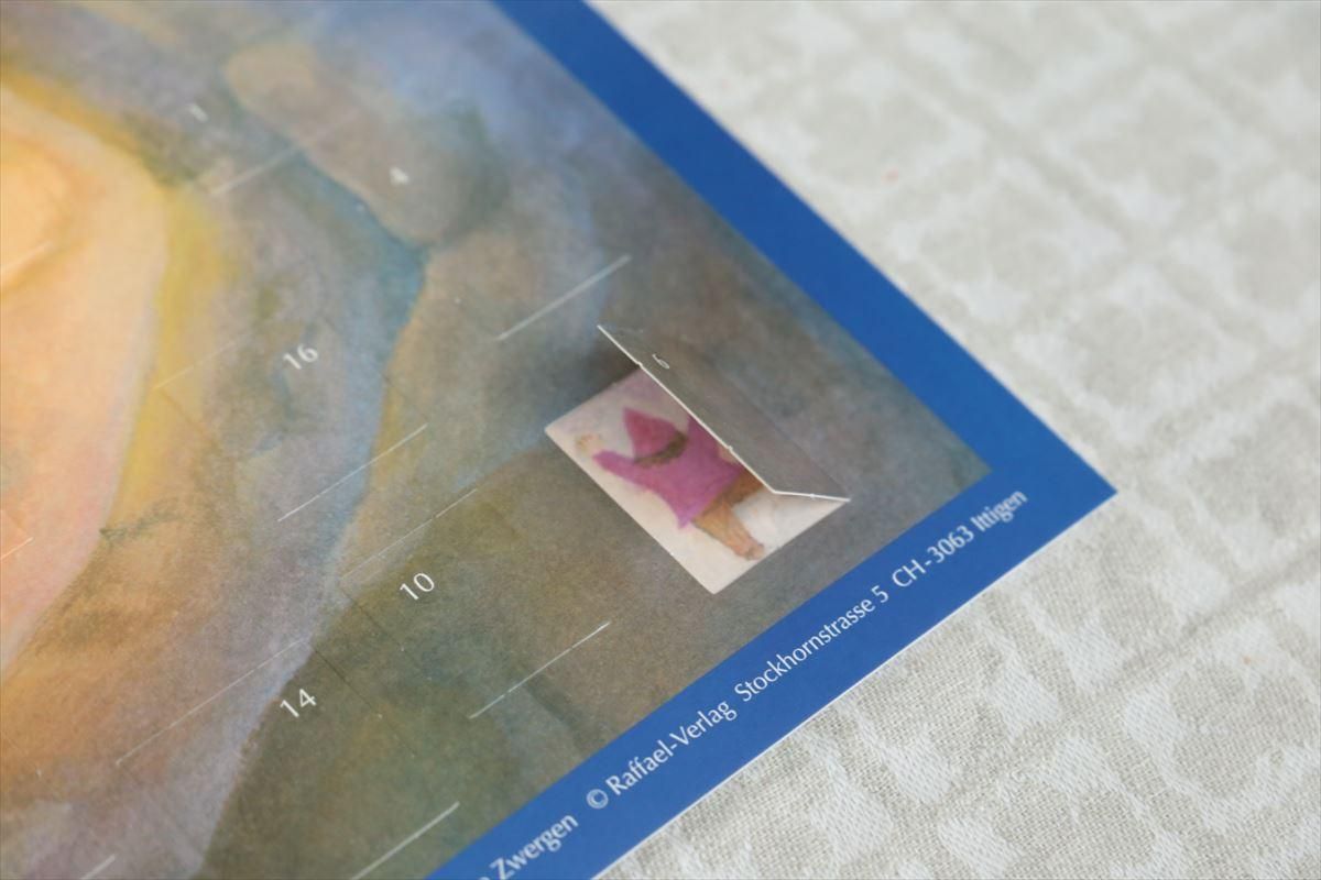 ドイツのRafferel-Verlag社のアドヴェントカレンダーです。 クリスマスをモチーフに描かれた風景の中に24個の小さな窓があり、 12月1日からクリスマスを迎えるまでに、一日に一つずつ番号順に窓をあけていきます。 どんな絵が現れるのか毎日楽しみです。
