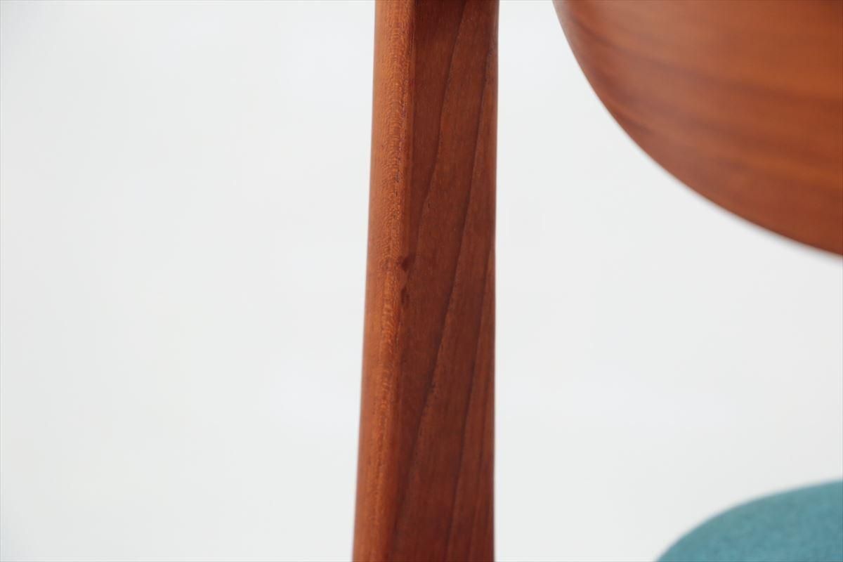Erik Buch(エリック バック)デザインのチークのダイニングチェアーです。 デンマークのODENSEにある家具メーカーFUNDER SCHMIDT&MADSEN社で 1960年代に製造されていました。背もたれのデザインが特徴的で、どの角度から見てもとても美しいシルエットです。 座面はデンマークのファブリックブランドKvadrat(クヴァドラ)のTonica2シリーズ/831(ウール100%)で張替えています。 木部の細かいキズやわずかな凹みなど多少使用感はありますが、良いコンディションです。