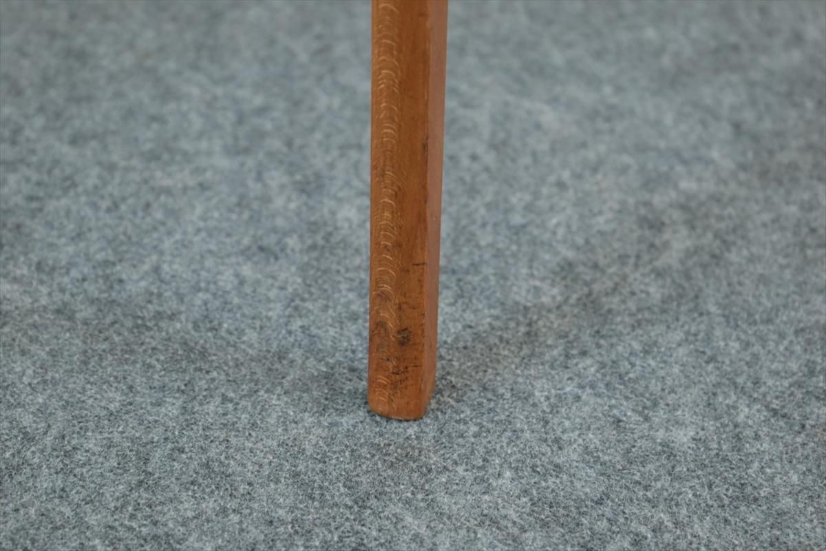 チークのダイニングチェアーです。 背もたれのフォルムがアクセントとなったシンプルなデザインです。 背もたれはチーク、脚はビーチ材です。 座面はデンマークのファブリックブランドKvadrat(クヴァドラ)の生地で、ファッションデザイナー皆川明氏デザインの「Tambourine Hallingdal」シリーズ(ウール70%・レーヨン30%)で張り替えました。 濃いブラウンの生地にゴールドの刺しゅうが可愛らしいチェアです。 細かいキズや凹みなど多少使用感はありますが、良いコンディションです。