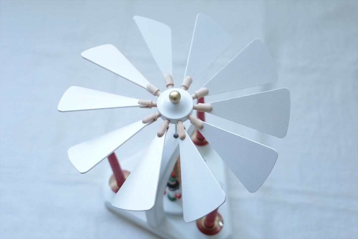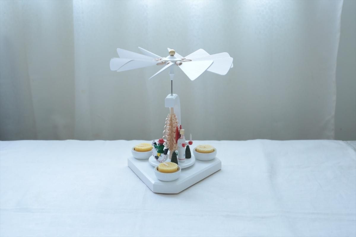 ドイツのAlbin Preissler(アルビンプライスラー)のキャンドルスタンドです。 プロペラは、中央のステージと連結されていて、ローソクの炎で温められた空気が上にのぼり、 羽根を回転させて真ん中のステージが回るという仕組みです。 真鍮のロウソク立てと木で作られた動物や人物が飾られています。 素朴で温かみのある色合いやモミの木の繊細な作りをお楽しみください。 また、キャンドルホルダーはティーキャンドル用とスティックタイプ用の2種類つきです。 *キャンドル、箱付きです。