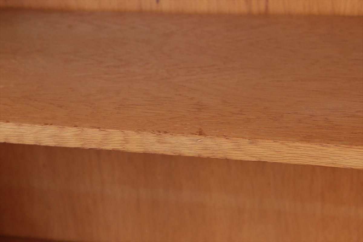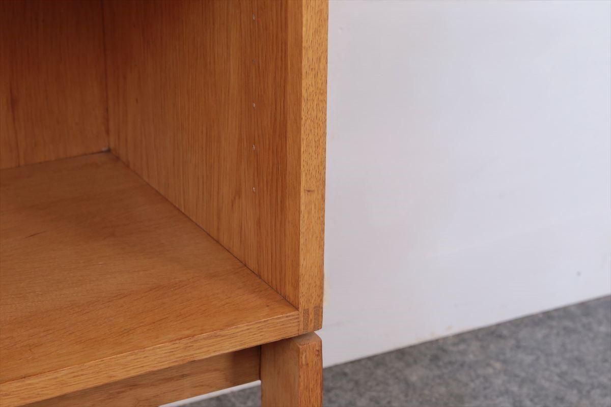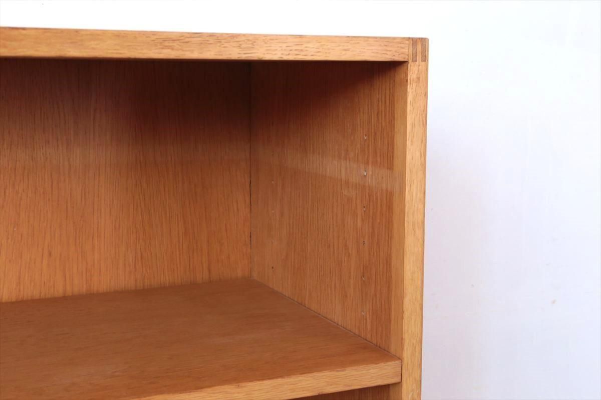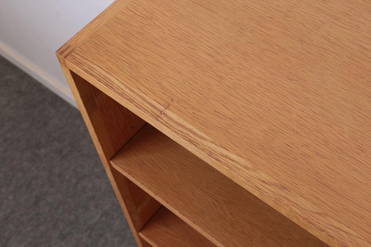 デンマークの家具メーカーMunchMobler社より販売されていた「M40」シリーズのオークの本棚でHeningJensen&TorbenValerieによるデザインです。 とてもシンプルなデザインですが、角を組木のような技術で次いであり、細かいつくりが丁寧です。 棚板は24段階の高さ調節が可能です。様々なサイズの本の収納に便利です。 背中も突板がきれいに張られた仕様でお部屋の仕切りとしてもお使いいただけます。 コンパクトなサイズ感で様々な空間で飾り棚としても活躍しそうです。 画像の様に背板に日焼けの跡があります。また、小さなキズや凹み等多少使用感はありますが、全体的には良いコンディションです。
