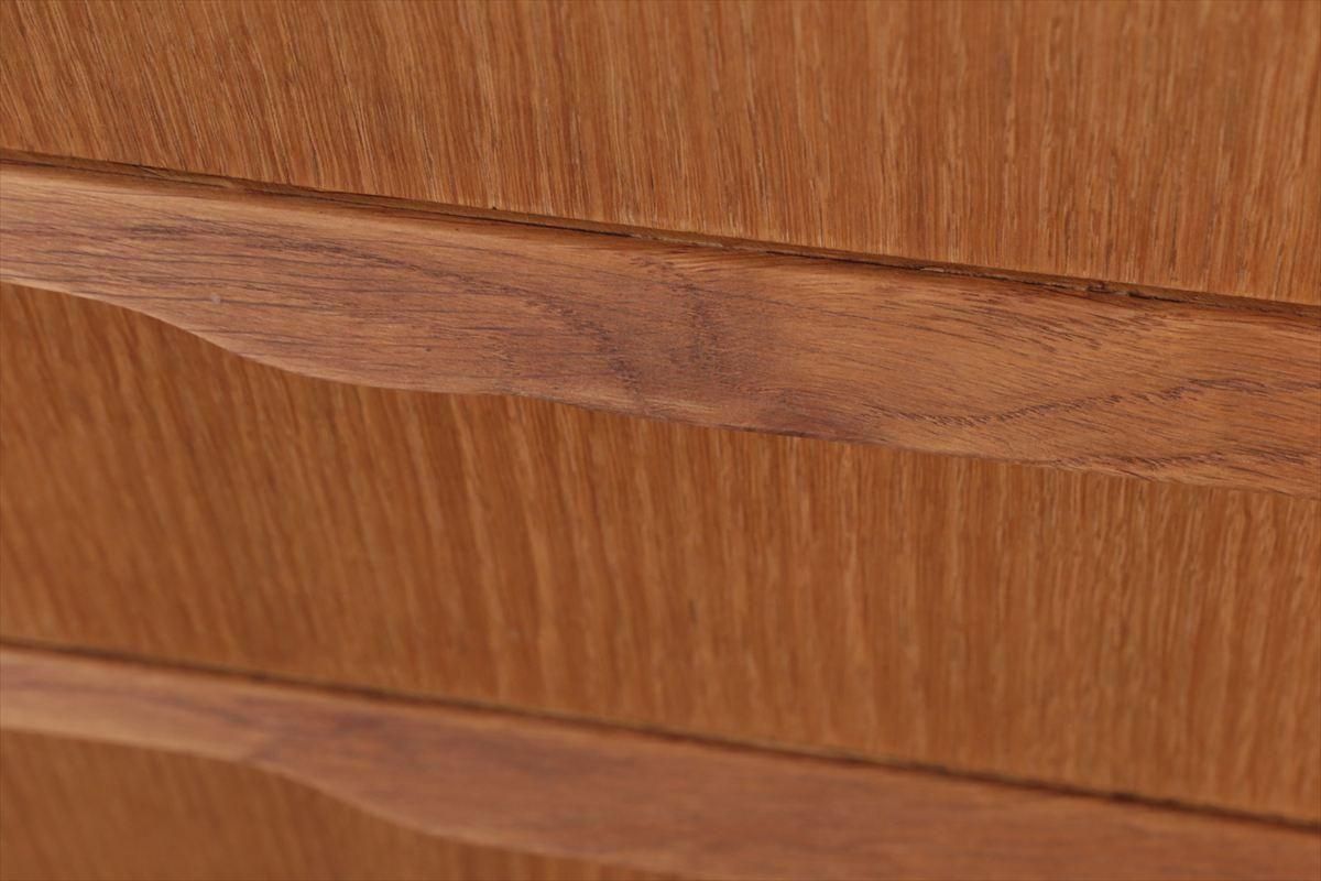 ヴィンテージでは少ないオークの6段チェストです。 すっきりとした持ち手がアクセントとなったシンプルな洗練されたデザインです。 衣類はもちろん身の回りの小物などもすっきりと収納できます。 天板にキズやシミがあり、両横面下部の突板が浮いて反っています。手で触ると凸凹が分かります。 また、経年により脚がやや内向きになっています。がたつきが無いように調整済みです。 その為、こちらのチェストはこれらを考慮した割引価格になっております。何卒ご了承下さい。 その他の細かいキズや凹みなど多少使用感はありますが、建付け等には問題はありませんのでご安心ください。