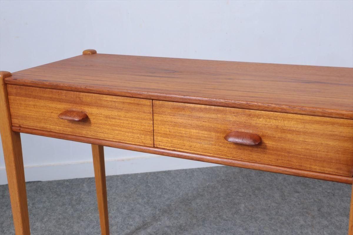 スウェーデンで買い付けたチークのサイドテーブルです。 チーク×オークを組み合わせたスウェーデンらしい軽やかなデザインです。 脚はすっきりと細く、奥行も浅いため、狭いスペースにぴったりです。 ベッドサイドや玄関先、ちょっとしたスペースにアクセントとして置いてみるのも素敵です。 天板はチーク、脚はオークです。また、背面もきれいな仕上げです。 細かいキズや凹みなど多少使用感はありますが、良いコンディションです。
