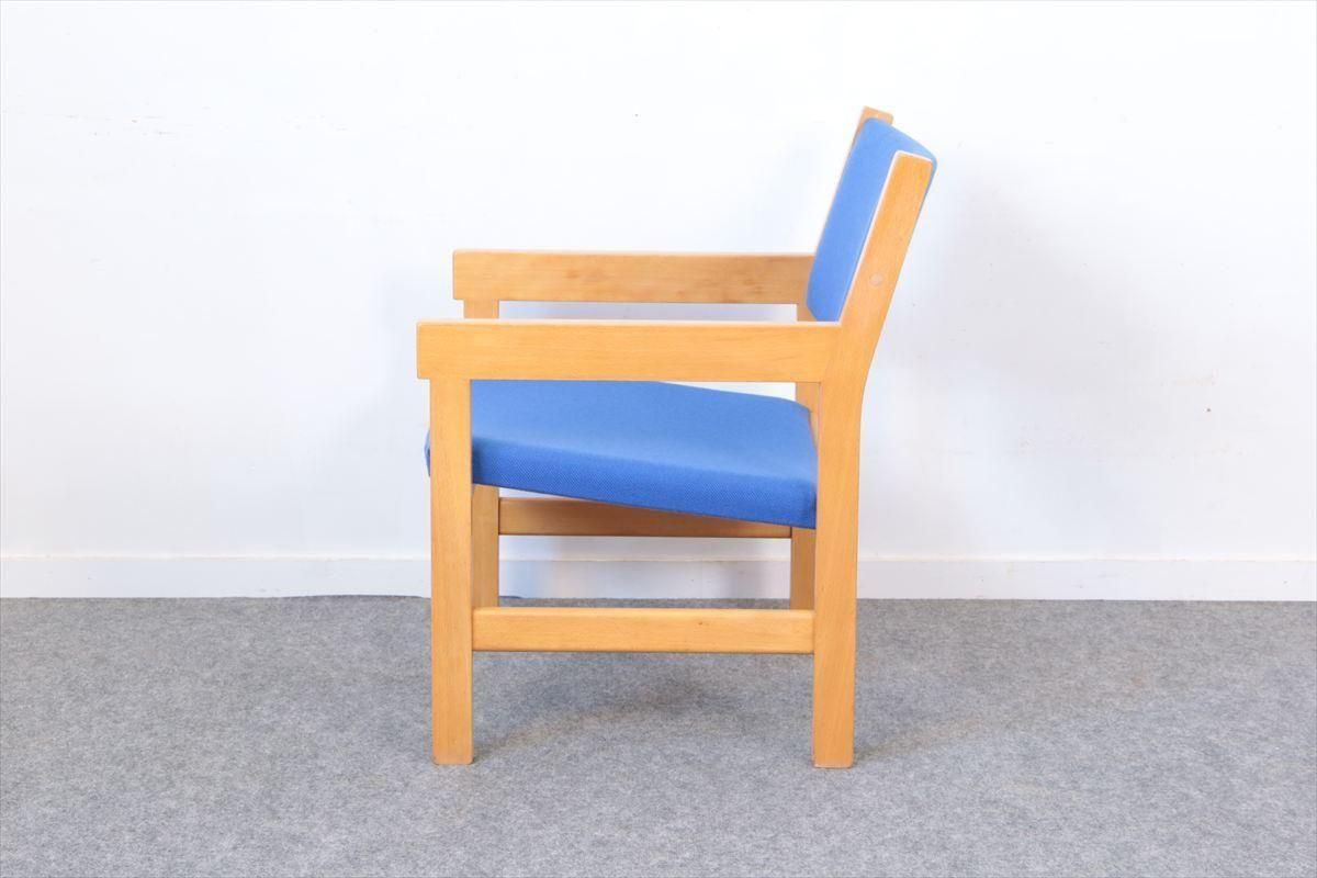 ソファとチェアーの中間のようコンパクトな造りながらしっかりとした丁寧な造りです。こちらのフレームは明るいビーチで、横幅もやや広めでゆったりとした座り心地です。