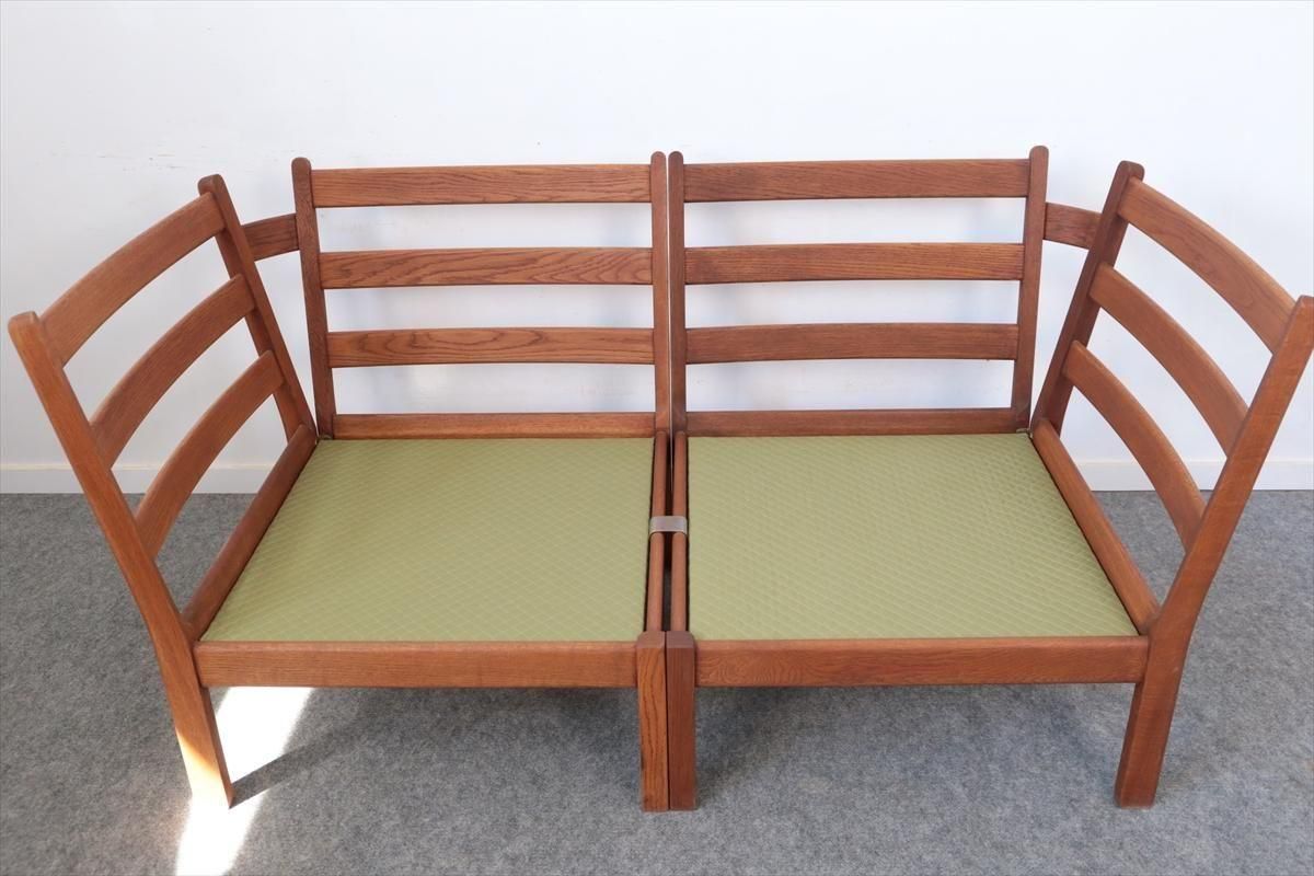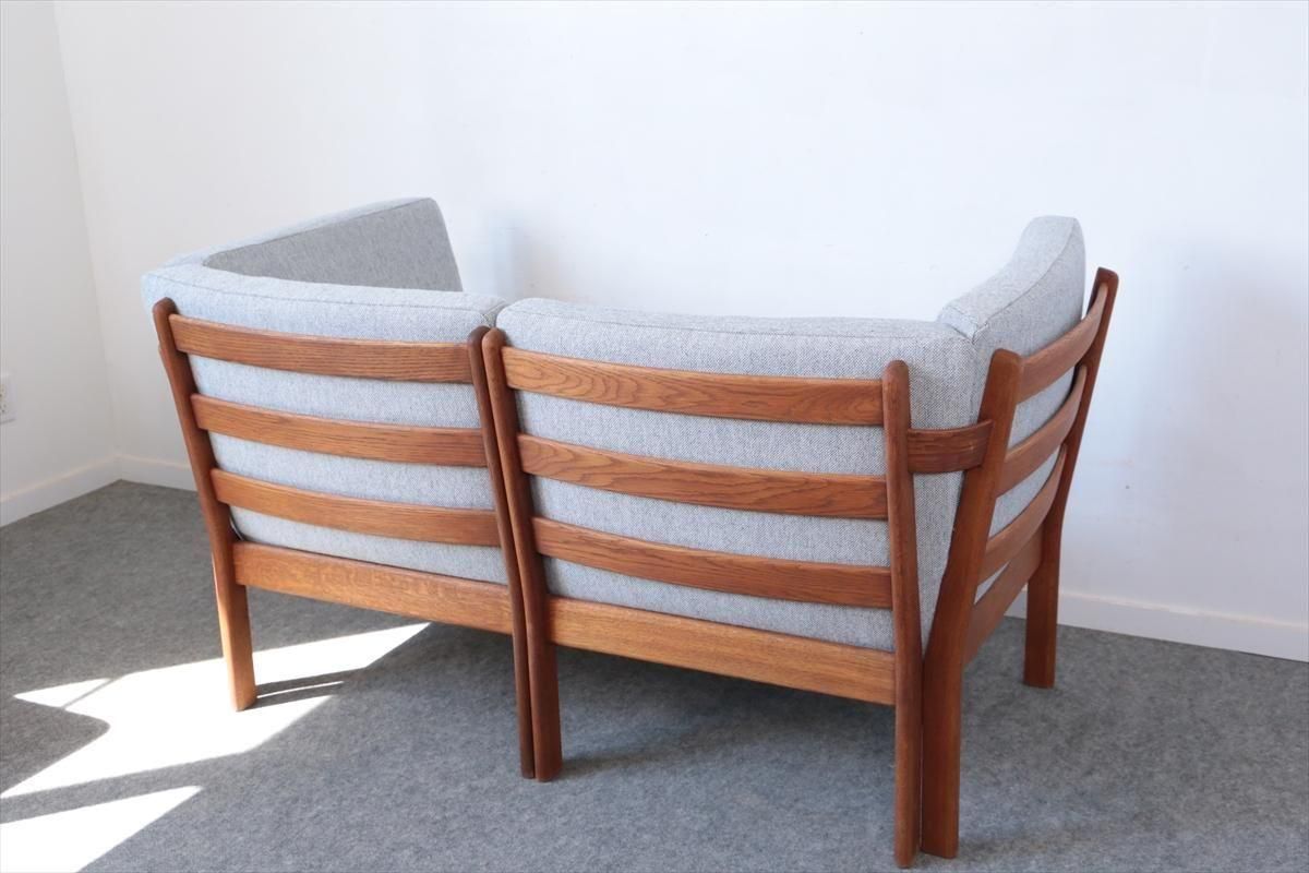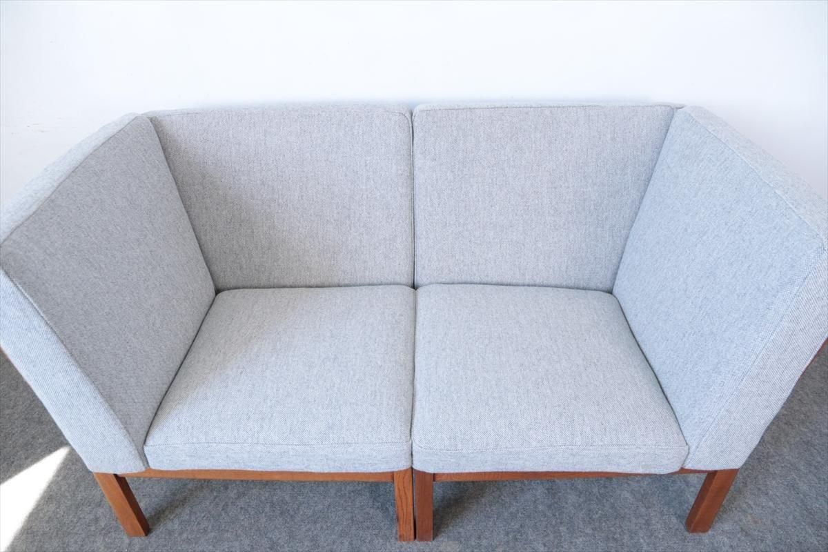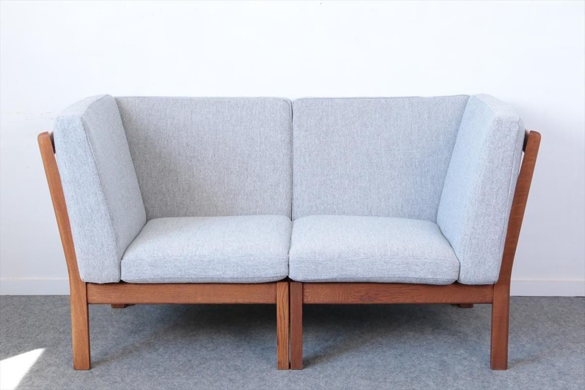 Hans J Wegner(ハンスJウェグナー)のモジュラーソファ「GE280」です。 組み合わせによって2シーターからさらに大きく変化し、コーナーなどの空間を活かした配置が可能なシリーズとして1980〜90年代頃に製造されたものです。こちらはアーム付きの組み合わせで2シーターソファとして活躍します。フレームは別々にすることも可能です。*連結金具付き クッションは柔らかなウレタンタイプです。 デンマークのファブリックブランドKvadrat(クヴァドラ)のHallingdalシリーズ/116(素材:ウール70%・レーヨン30%)で張り替えました。 それぞれのフレームは個体差により色味や木目が多少異なります。多少使用感はありますが、良いコンディションです。