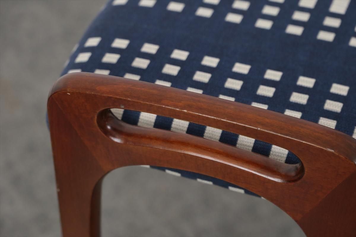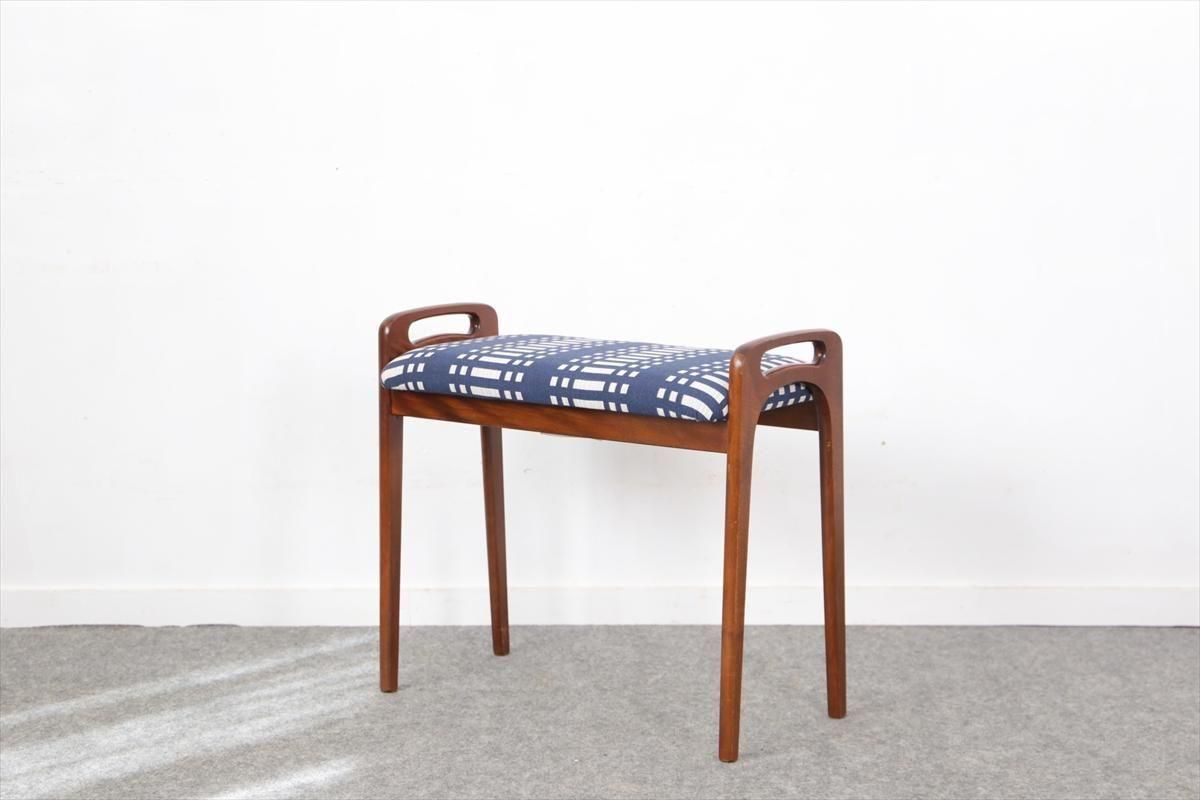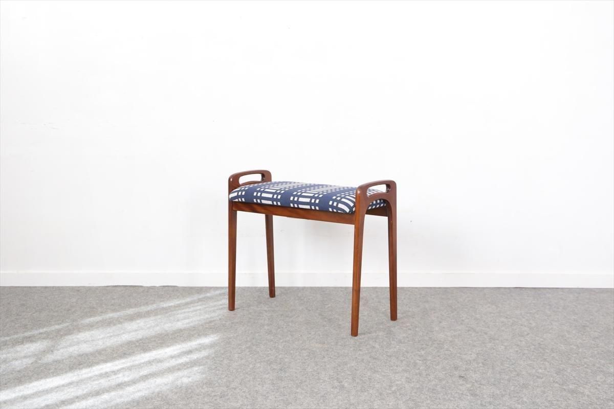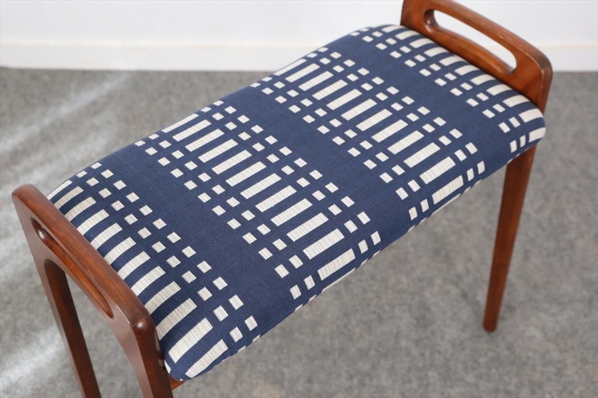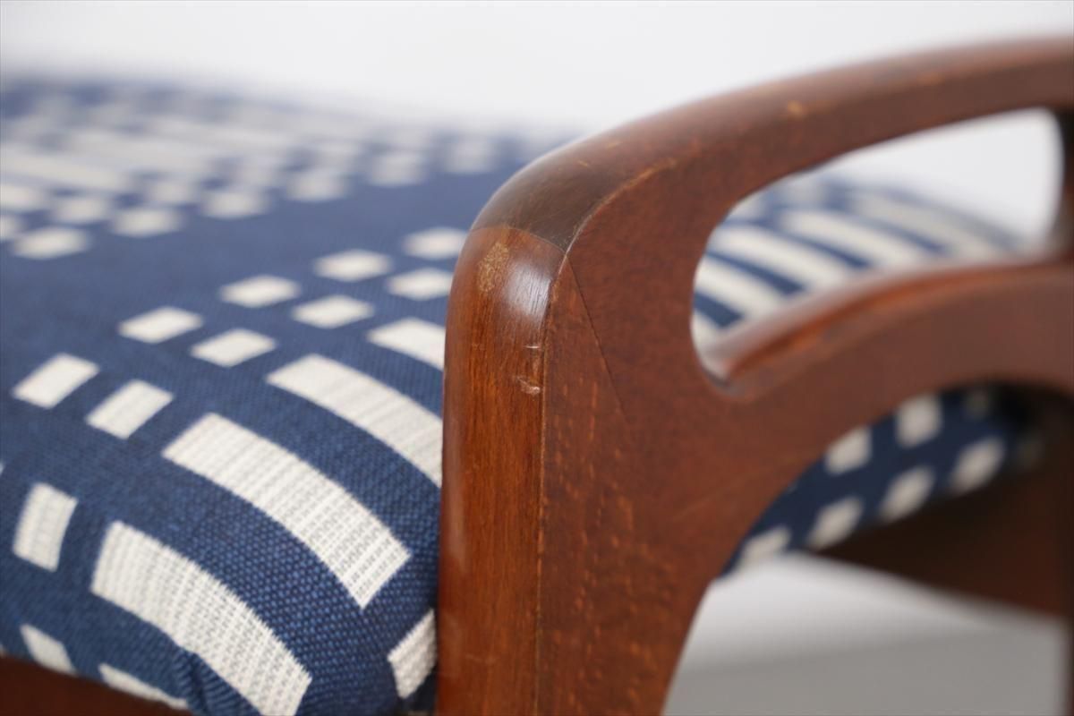 デンマークのチークのスツールです。 通常のチェアーに比べてやや高めのハイスツールで、 テーブルにはもちろん、ちょっと座るのに丁度良いサイズです。 生地はフィンランドのテキスタイルブランドJohanna Gullichsen(ヨハンナ・グリクセン)の「Nereus(ブルー)」(綿100%)の生地で張替ました。グラフィックパターンを織りで表現したテキスタイルは、立体感のある優しい手触りや、糸が重なることで表現される色合いも美しく、季節を通してお楽しみいただけます。 画像のようにフレームの小さなキズや凹みがあります。 その他に多少使用感はありますが、良いコンディションです。