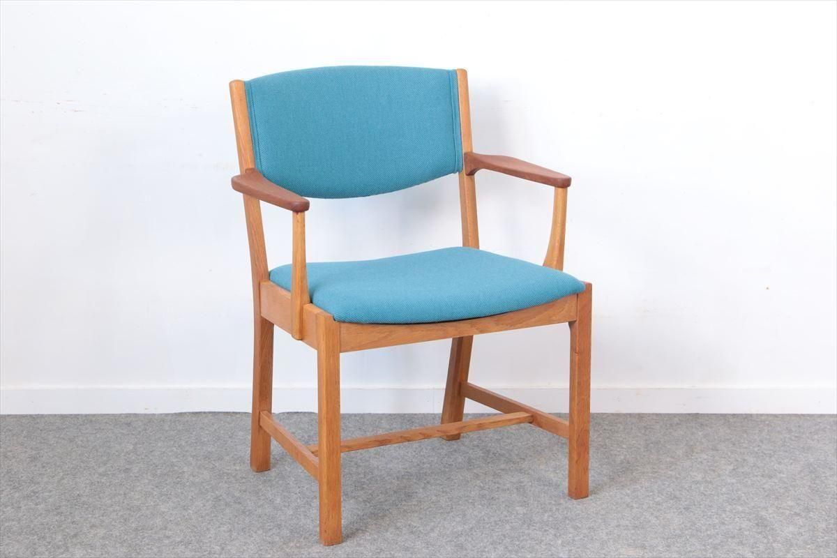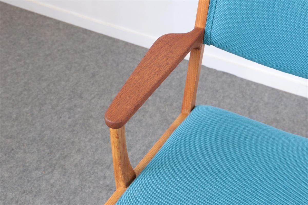 アームチェアー(チーク・オーク/NC・水色)/デンマーク家具/J252-59b