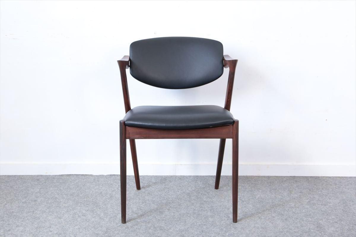 Kai Kristiansenカイ・クリスチャンセン/ダイニングチェアー「No.42」(ローズウッド・レザーBK)/デンマーク家具/K227-53c