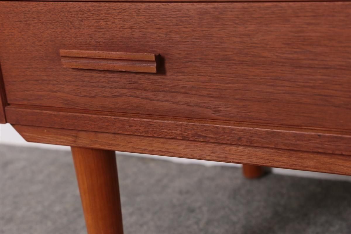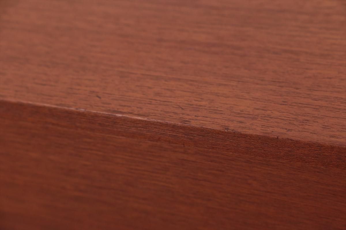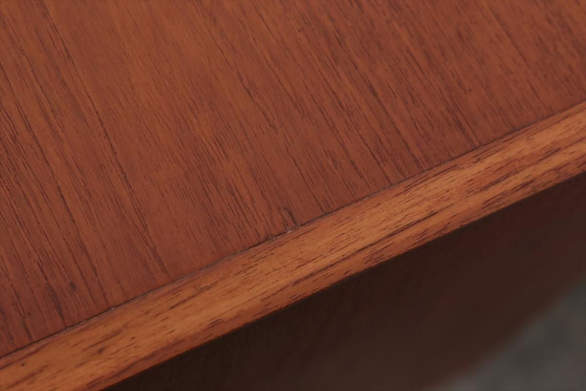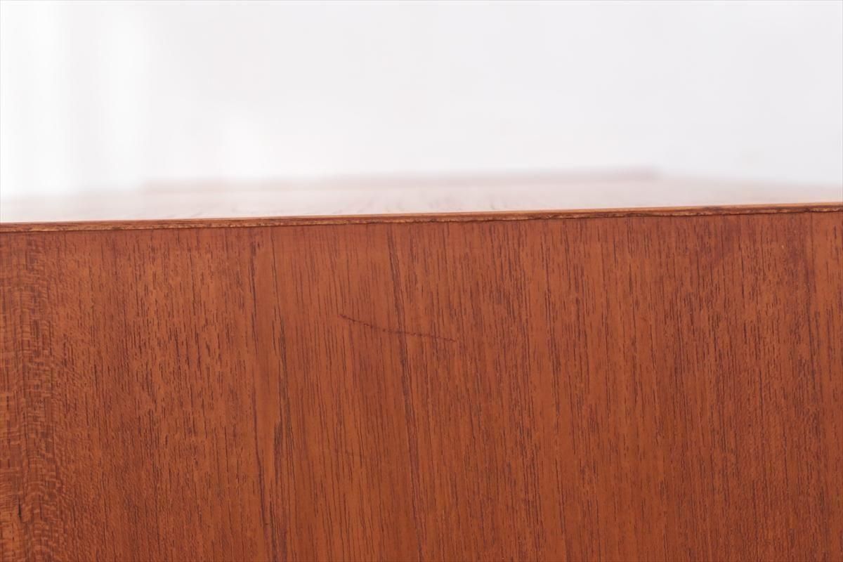 デンマークのチークの4段チェストです。 幅が90cmとやや広めなサイズで、立体的な持ち手が可愛らしいデザインです。 お気に入りのものをディスプレイしながら、衣類や身の回りの小物などの収納に便利です。 高さが68cm程で上に物を置いたり、飾ったりするのにちょうど良いサイズです。 画像の様に持ち手に小さな欠けや凹みがあります。 その他に天板や縁に小さなキズや多少使用感はありますが、全体的には良いコンディションです。