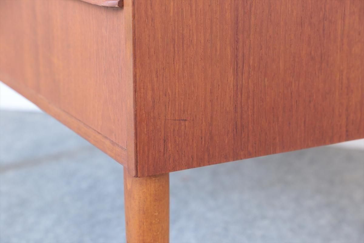 デンマークのチークの6段チェストです。 ストレートな持ち手がすっきりと見えてシンプルなデザインです。 持ち手はどこを持っても引き出しやすく、優しいチークの色がお部屋に馴染みやすいです。 お気に入りのものをディスプレイしながら、衣類や身の回りの小物などをすっきりと収納できます。 天板の縁や角に画像のような小さな欠けやキズ、凹みがあります。 その他に細かいキズや色ムラなど多少使用感はありますが、良いコンディションです。