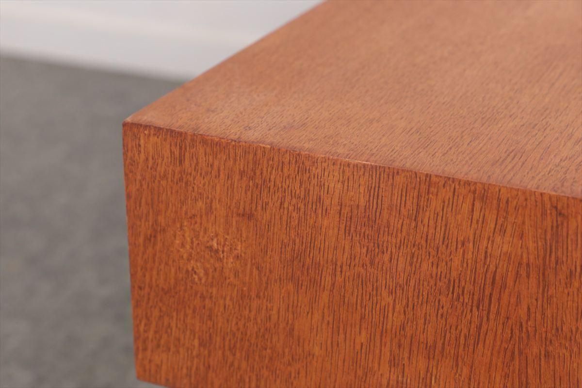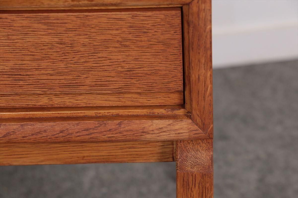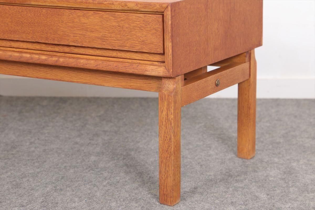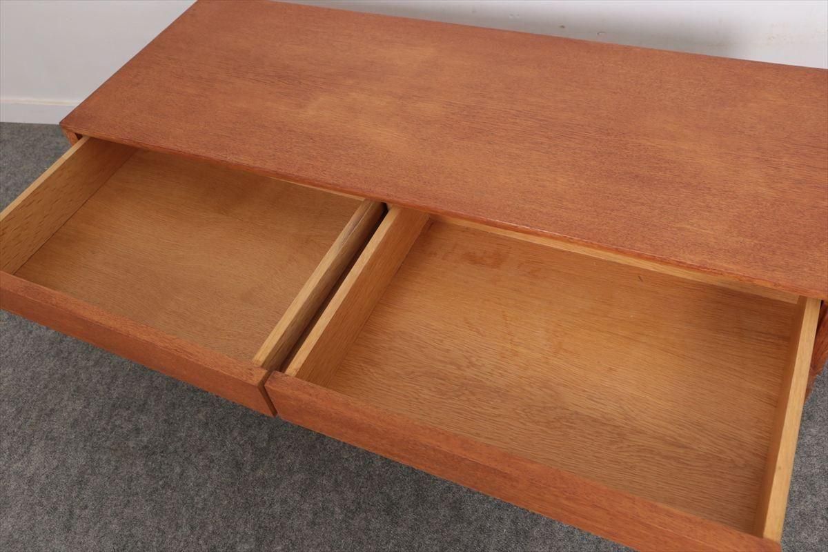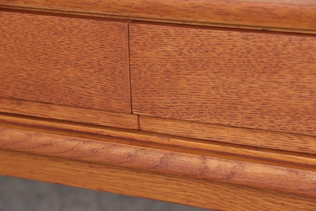 1962年にスウェーデンのIKEAで販売されていたオークのローチェストです。 こちらはポーランドのデザイナーMarianGrabinskiがデザインしたMTPシリーズの1つです。 MTPシリーズはチェストやキャビネット、本棚を自由に組み合わせることができた人気のシリーズでした。 2つ並んだ引き出しがデザインのアクセントとなったシンプルなデザインです。 引き出しの内部や全体の造りが良く、重厚さもあります。 テレビボードとしてもちょうど良い高さで、上にミラーや照明などを置いてディスプレイしても素敵です。背面もきれいな仕上げですので、コーヒーテーブルとしても使用できます。 経年のため、片側の脚がやや内側に向いていますが、がたつきがないように調整済みです。 その他にも小さなキズや色むらなど多少使用感がありますが、がたつきなどは無く、良いコンディションです。