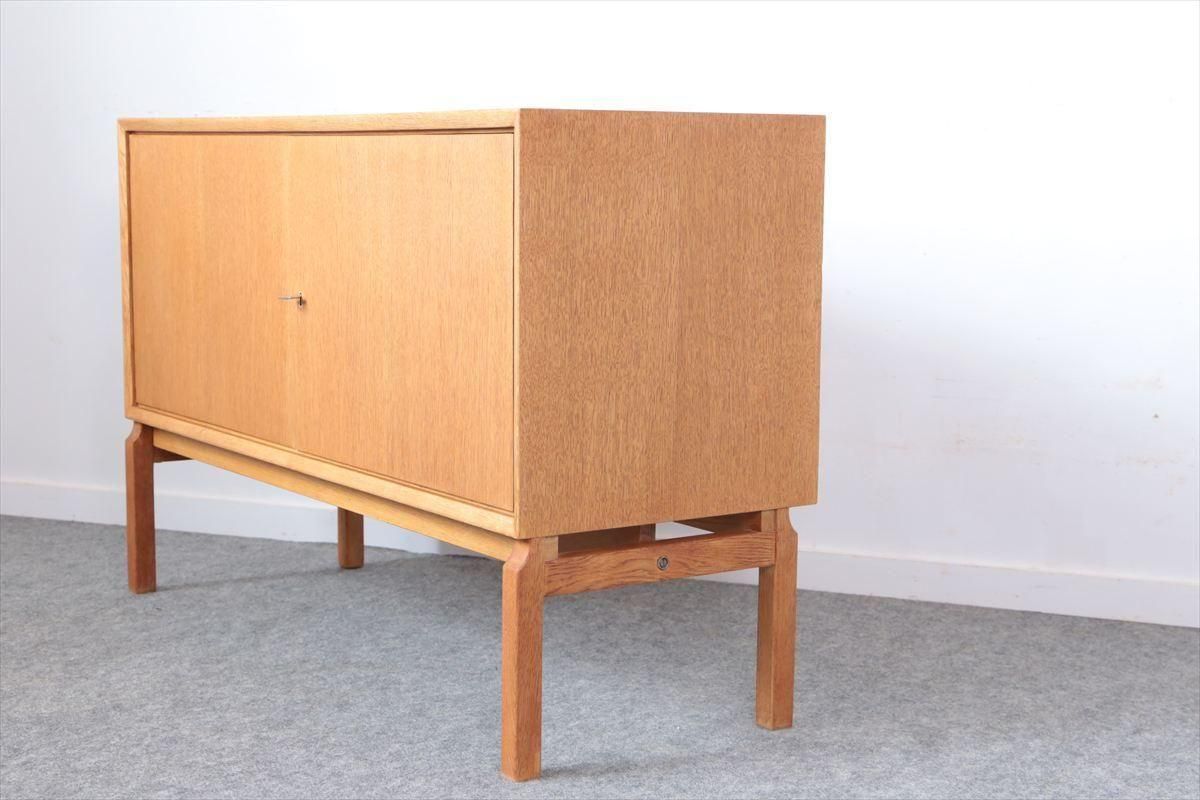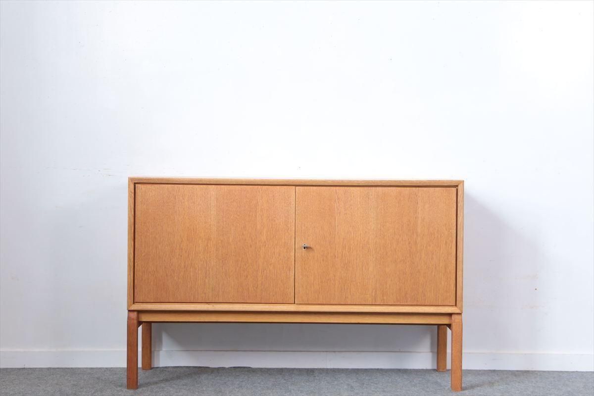 1962年にスウェーデンのIKEAで販売されていたオークのキャビネットです。 こちらはポーランドのデザイナーMarianGrabinskiがデザインしたMTPシリーズの1つです。 MTPシリーズはチェストやキャビネット、本棚を自由に組み合わせることができた人気のシリーズでした。 収納を楽しみながら、上にはミラーや照明などを置いてディスプレイしても素敵です。 扉は鍵を持ち手にして開閉するタイプです。古い鍵ですので、施錠はせずに持ち手としてのみご使用ください。現在は新しいマグネットキャッチを取り付けて開閉しやすいようにしています。 細かいキズや凹みなど多少使用感がありますが、がたつきなどは無く、良いコンディションです。