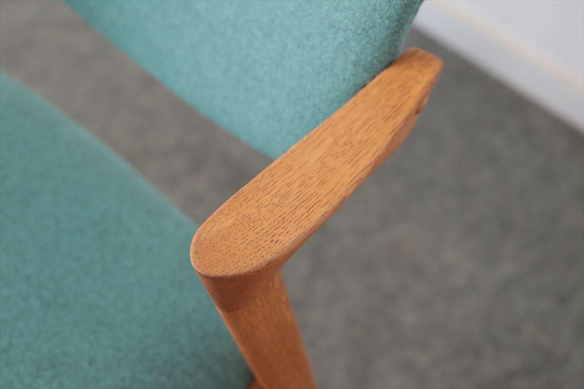 Kai Kristiansen(カイ・クリスチャンセン)デザインのアームチェアー「No.42」です。 こちらはローウッドのフレームで、小さな肘掛がアクセントになった人気の高いシリーズです。背もたれが可動し、座面下はベルト張りで柔らかな沈み具合が座り心地良く、ゆったりと座ることができます。 ダイニングに組み合わせてもアームが邪魔にならず、デザイン性と機能性に優れています。 細部まで上質で丁寧な造りのチェアーです。 ファブリックはデンマークのファブリックブランドKvadrat(クヴァドラ)のTonica2シリーズ/933(ウール100%)で張替えています。内部のウレタンとベルトは新しいものに交換済みです。細かいキズや凹みなど多少使用感はありますが、良いコンディションです。