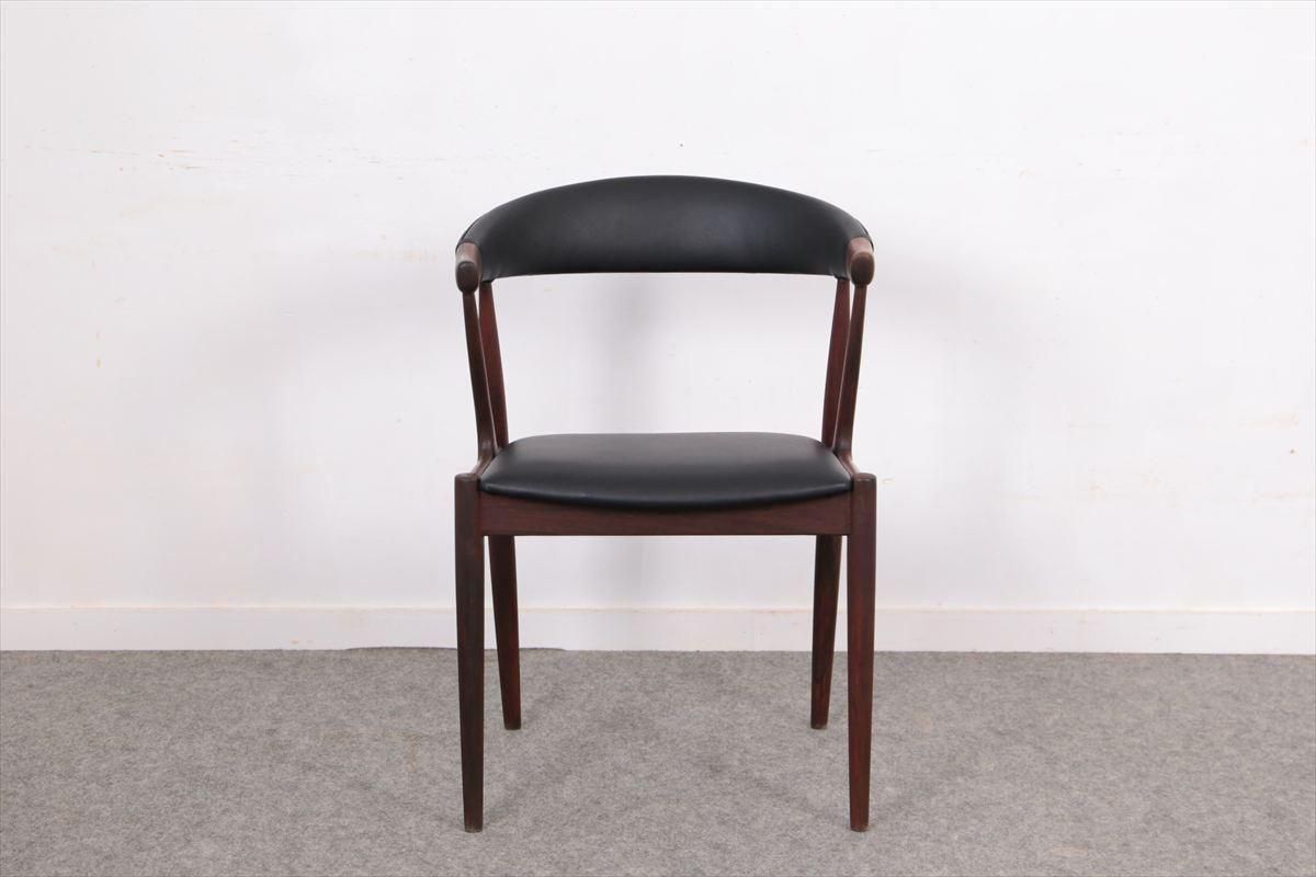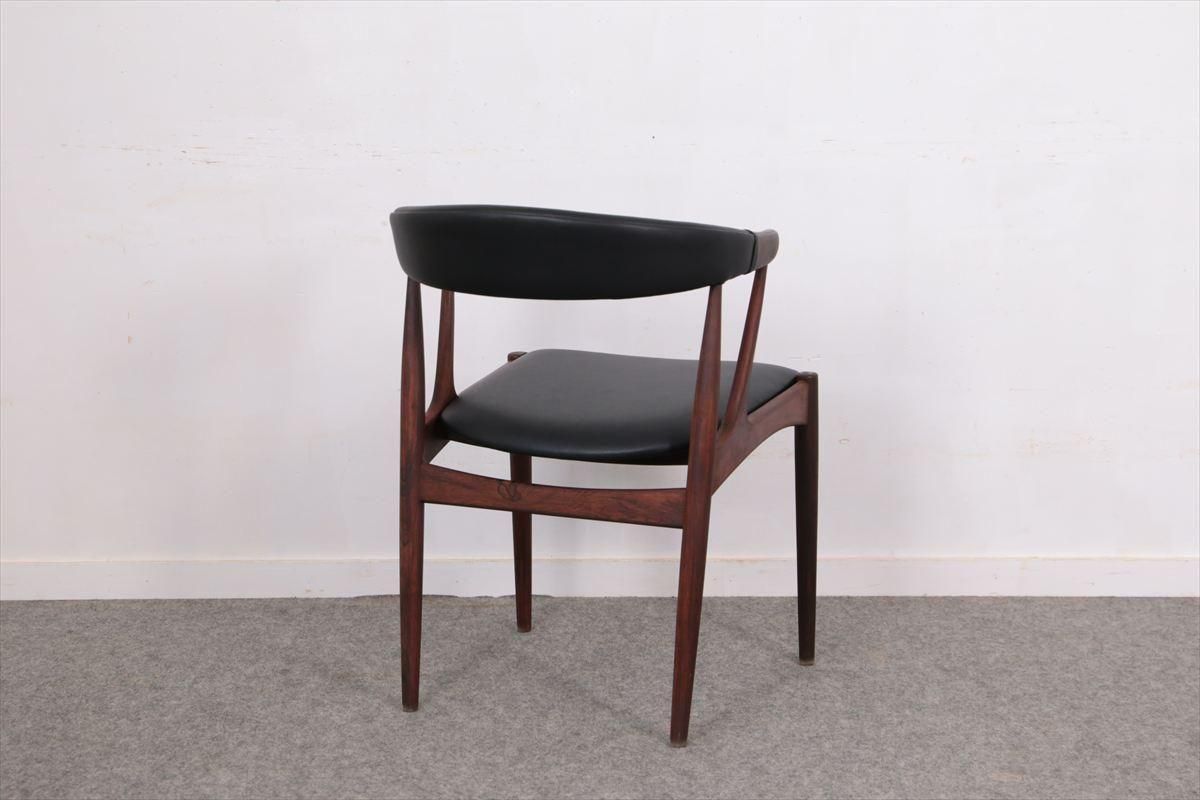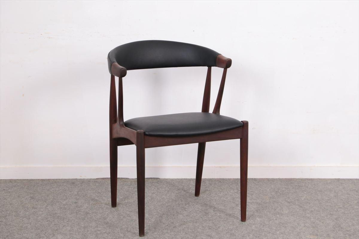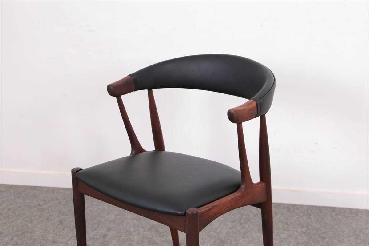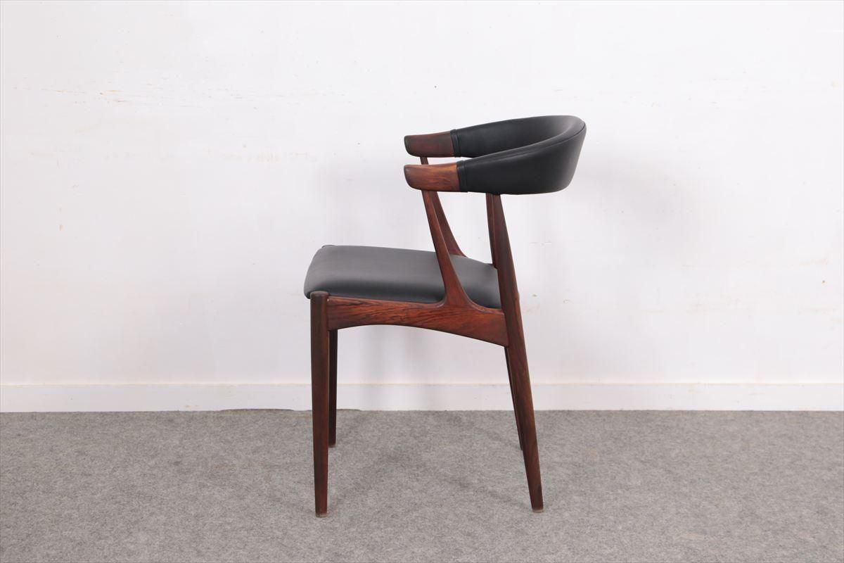 Johannes Andersen(ヨハネス・アンダーセン)デザインのダイニングチェアーです。 デンマークの家具メーカーAndersens Mobelfabrik社製の「BA113」というシリーズです。 ゆるやかな曲線が美しいフレームとハーフアームがアクセントとなったデザインです。 カーブした背もたれと機能的なアームがゆったりとした心地よい座り心地です。 背と座はレザーで張り替えています。黒のレザーとローズウッドの高級感のある雰囲気に仕上がりました。 革特有の小さなキズやしわがございますが、味わいとしてお楽しみくださいませ。木部の細かいキズや凹みなど多少使用感はありますが、良いコンディションです。