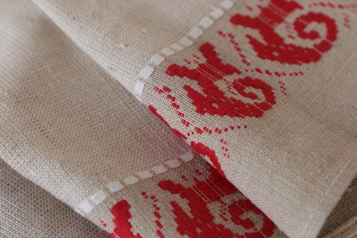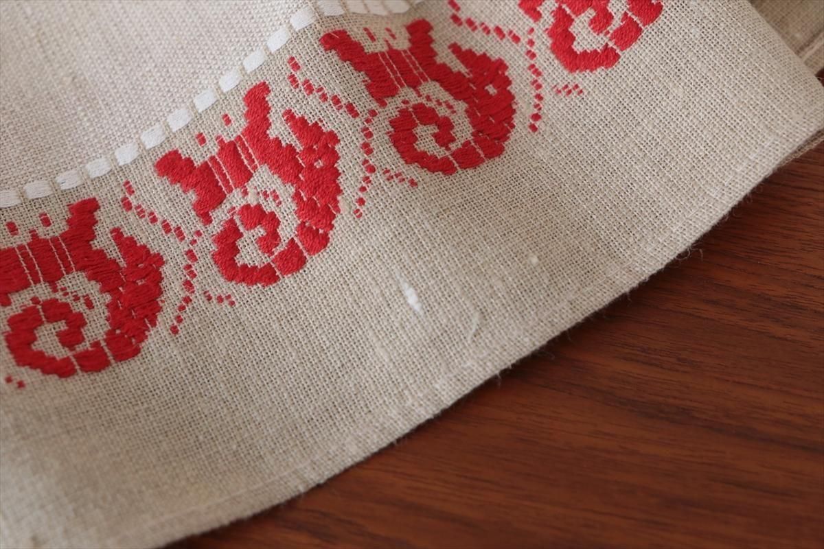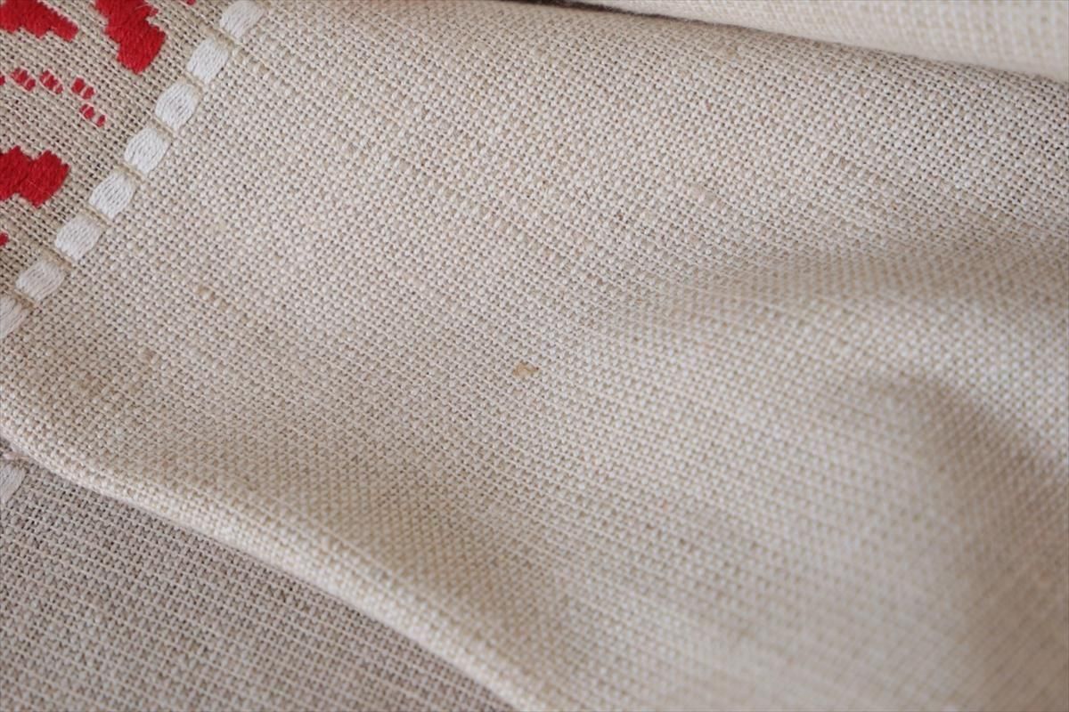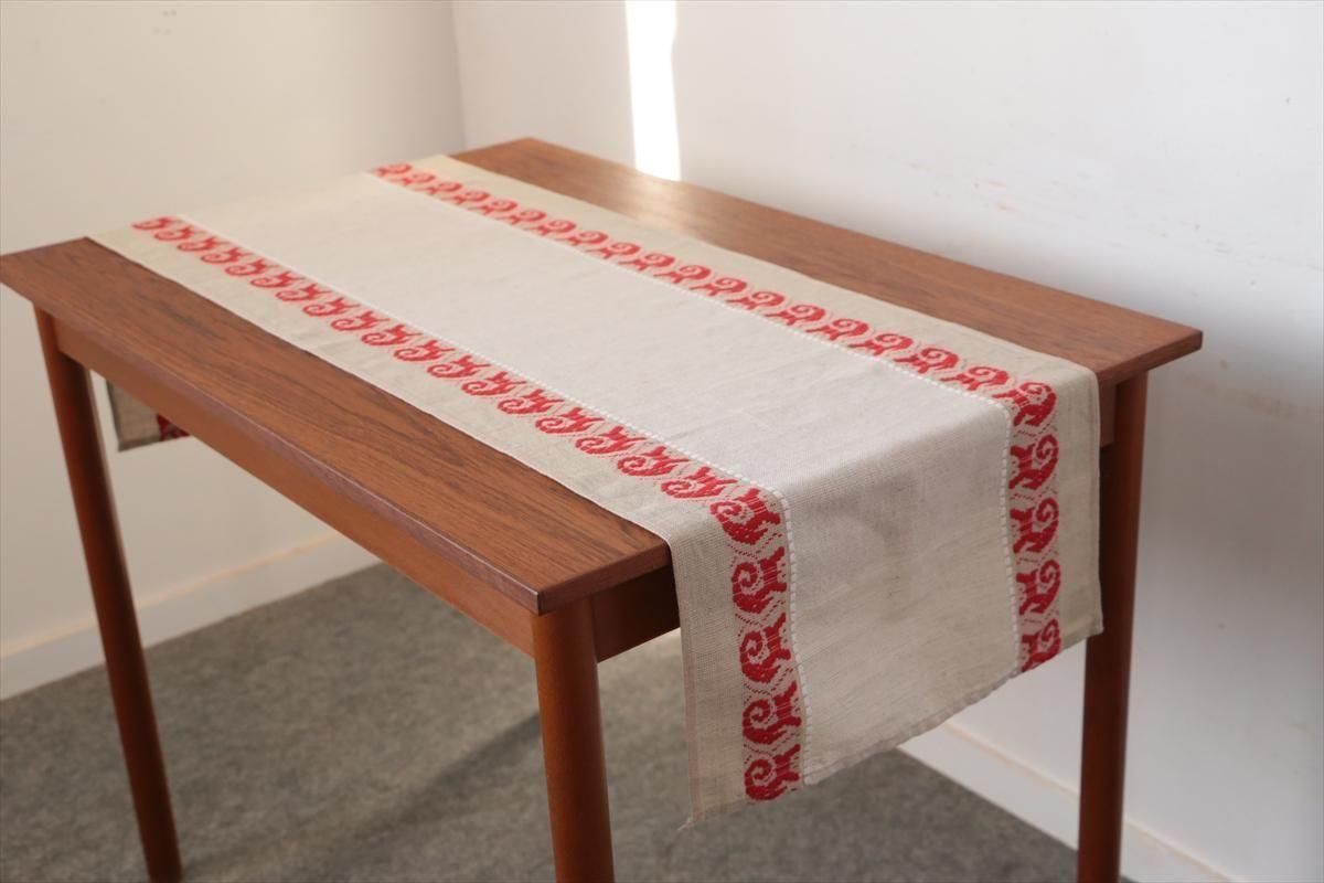 ユールボックの刺しゅうがかわいいテーブルセンターです。 ユールボックは北欧の伝統的なクリスマスのシンボルです。 テーブルセンターや窓に飾ったり、北欧のクリスマスの雰囲気をお楽しみいただけます。 麻と化繊の柔らかな風合いの生地です。 糸のつれなど多少使用感はありますが、お楽しみいただけることと思います。