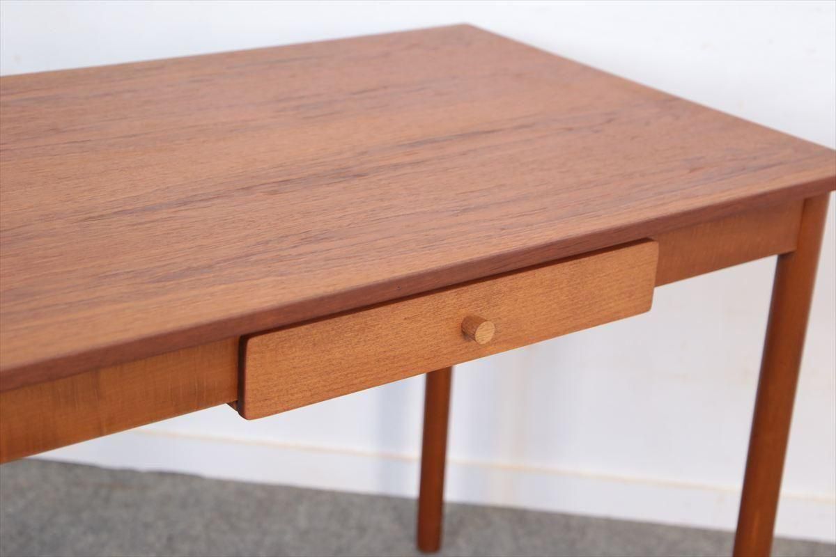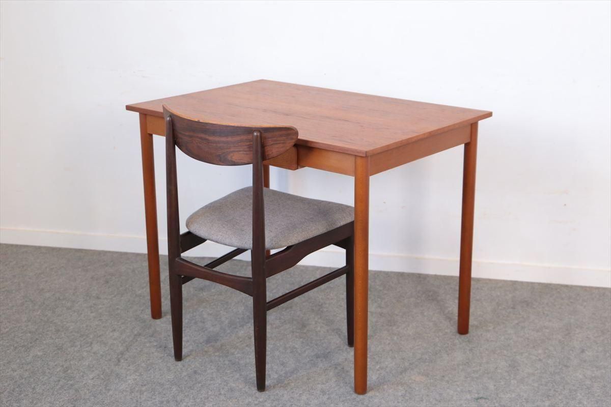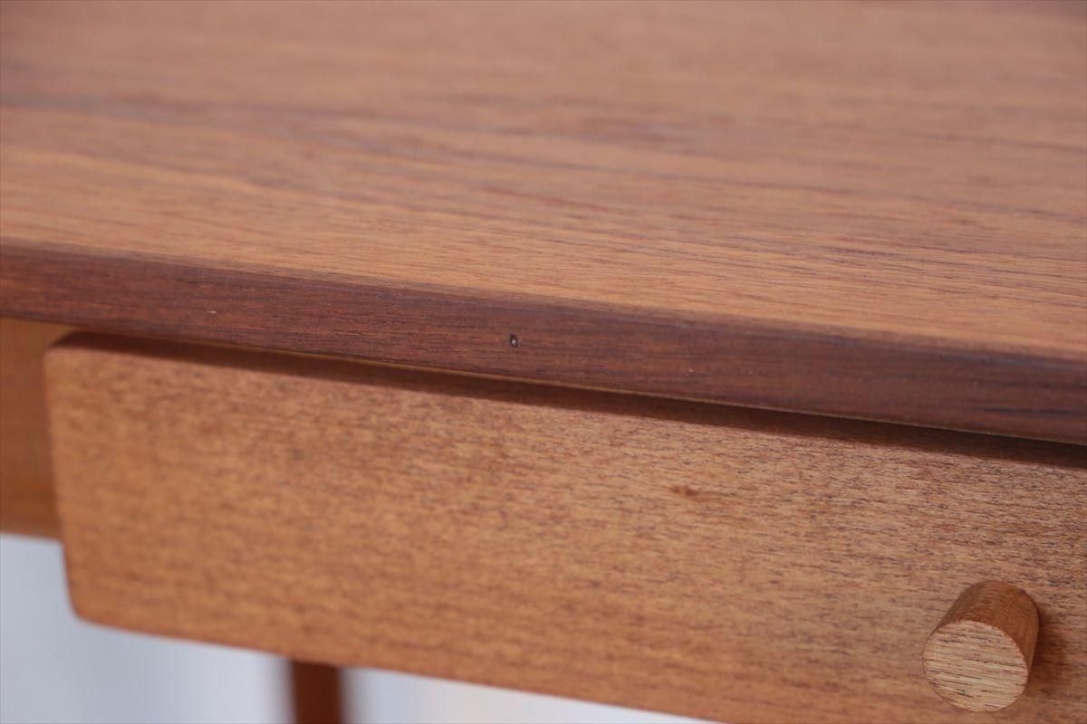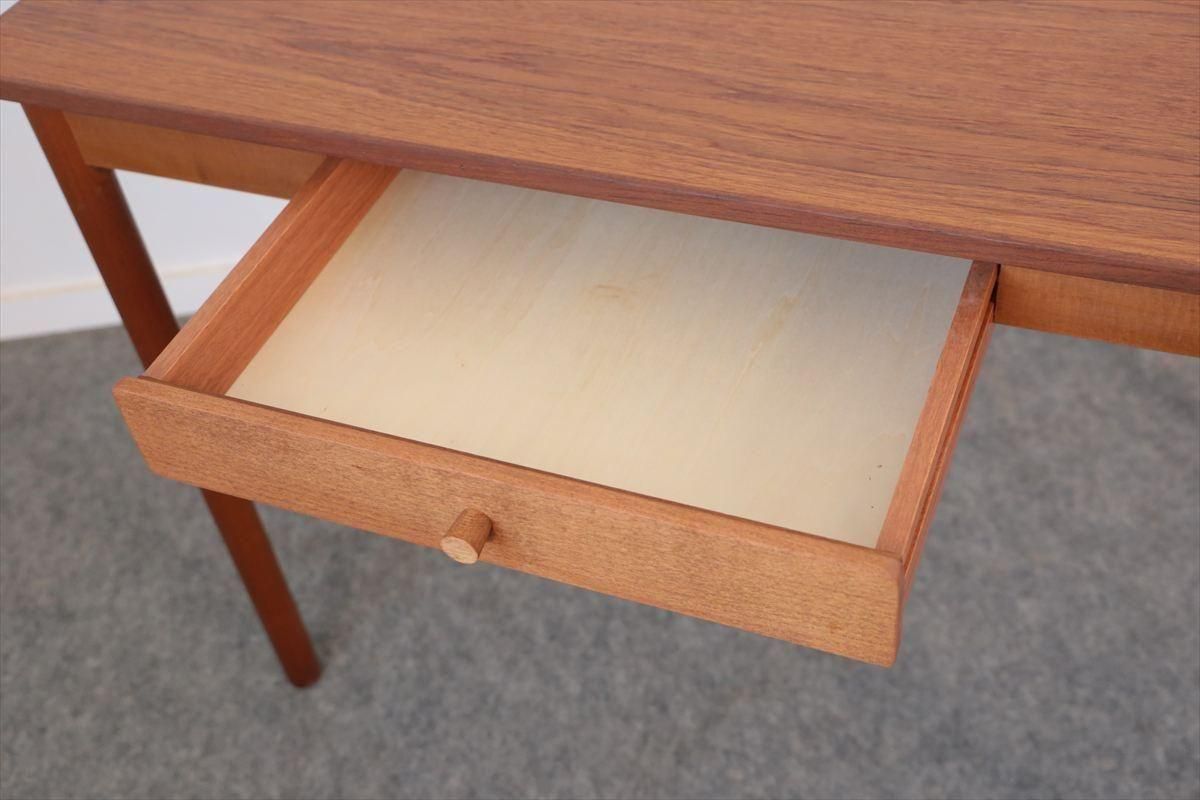 デンマークの小さなデスクです。天板はチーク、脚や幕板はビーチで構成されています。 天板幅が94cmとコンパクトで書き物はもちろん、ちょっとした作業台としても使用できます。 引き出しが1段あり、卓上の細々した物をすっきり収納できそうです。 こちらのデスクは裏側もきれいな仕上で、空間に配置することもできます。 小さなキズなど多少使用感はありますが、良いコンディションです。